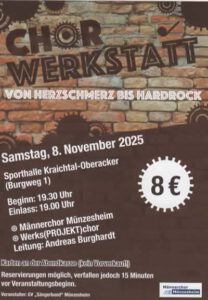 „Wo Klang Gestalt annimmt“ Unter diesem Motto veranstaltet der Männerchor Münzesheim seine dritte Chorwerkstatt am 08.11.2025, diesesmal in der Sporthalle...
