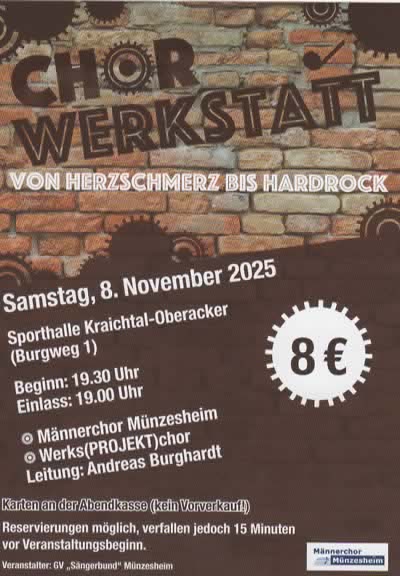 möchte der Männerchor zur zweiten Chorwerkstatt am 08. November 2025 in die Sporthalle